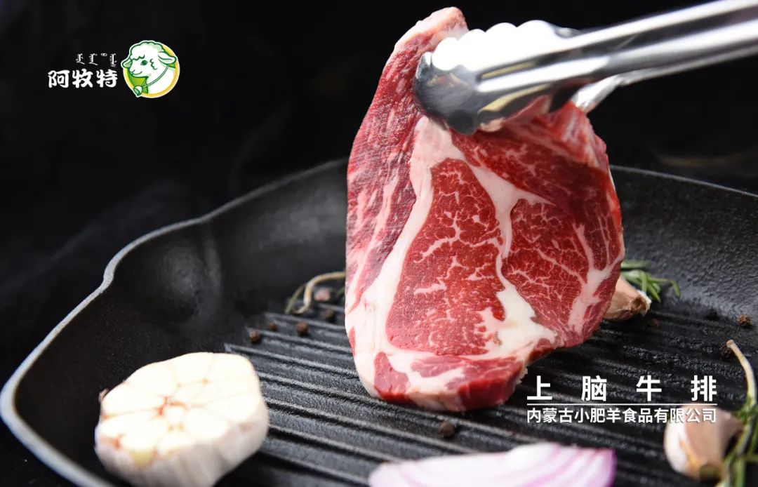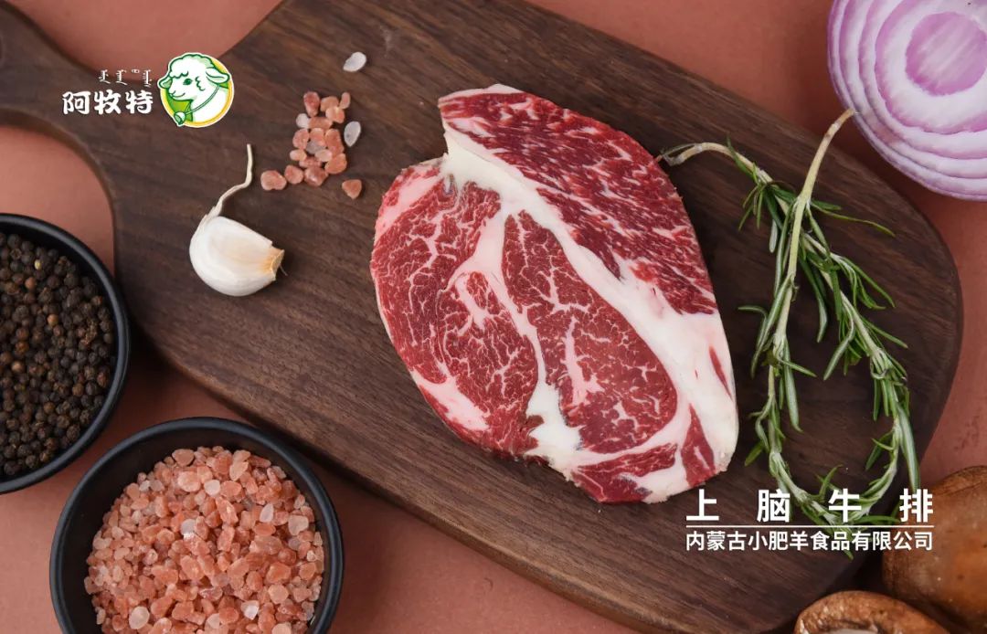 上脑牛排位于肩胛下板腱处的上脑肉,牛“嫩肉”部位,漂亮的雪花纹路和鲜嫩的口感。