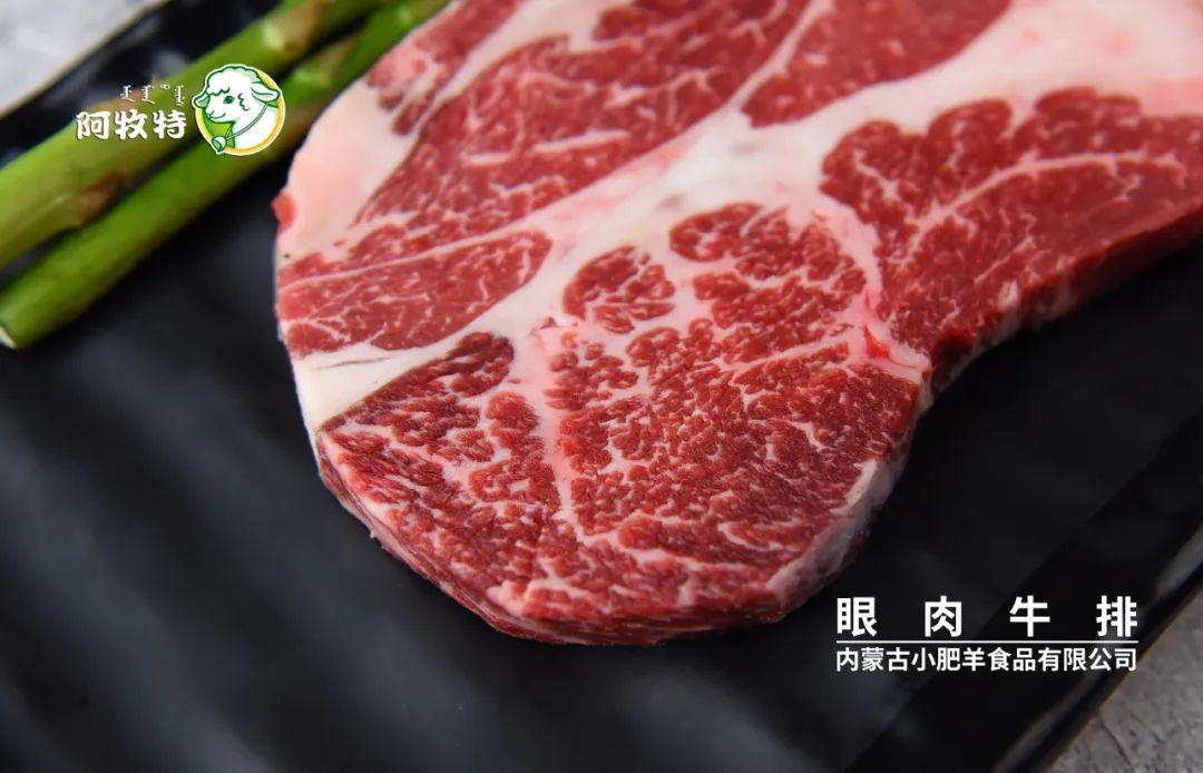 眼肉牛排取自牛靠近胸部的肋肌部位此部位很少运动,所以肉质软较嫩大理石纹路较多且分布均匀,肉质鲜嫩多汁。