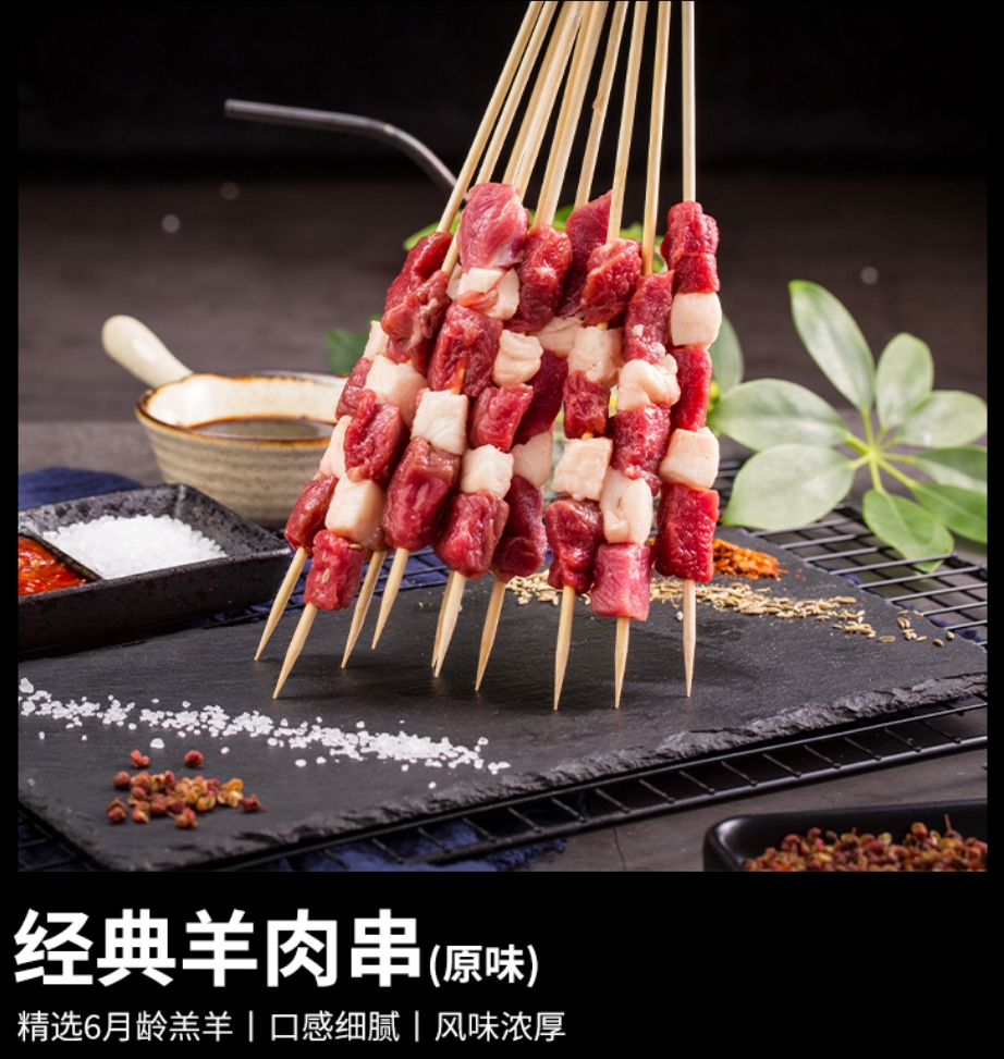 经典羊肉串精选羔羊肋条肉,这里的肉自带一股淡淡的奶香味。没有过多复杂的腌制,最大程度保留了羊肉本身的鲜味。