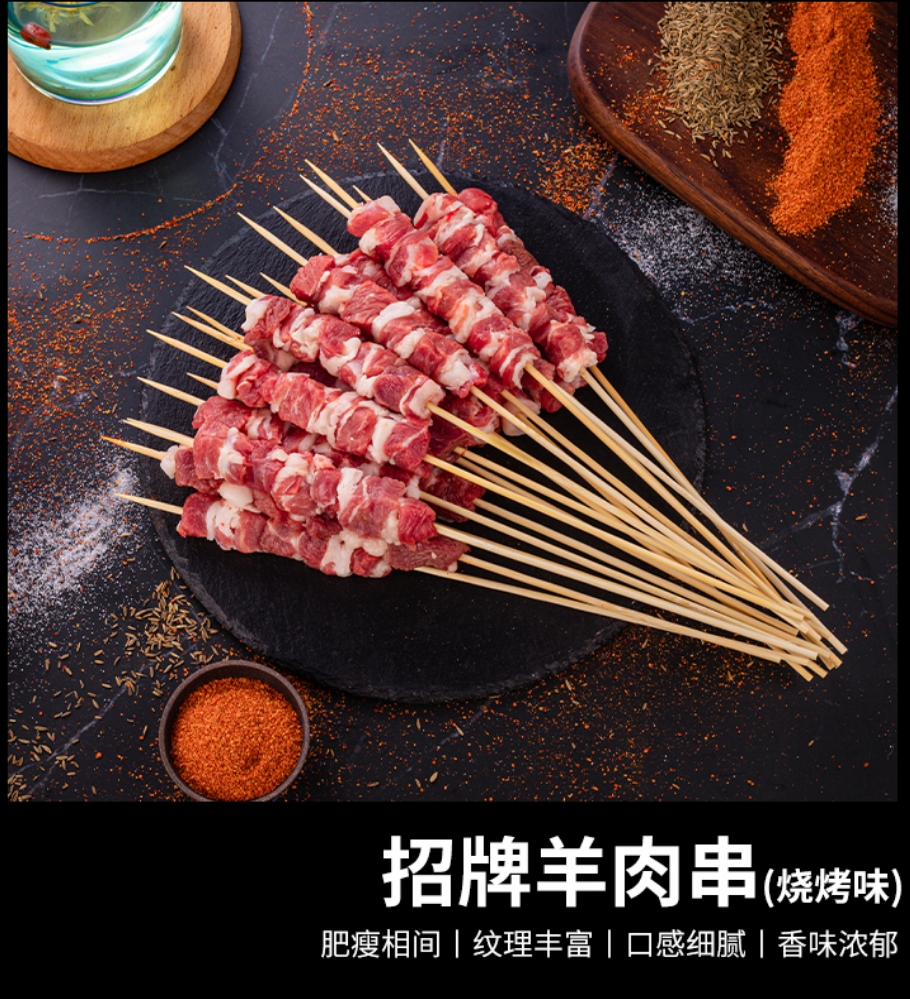 用的都是广东大草原散养羔羊的后腿肉。肉质紧实又鲜嫩,一点膻味都没有!师傅手工切肉,肥瘦均匀搭配,一串上有瘦有肥,烤起来滋滋冒油。