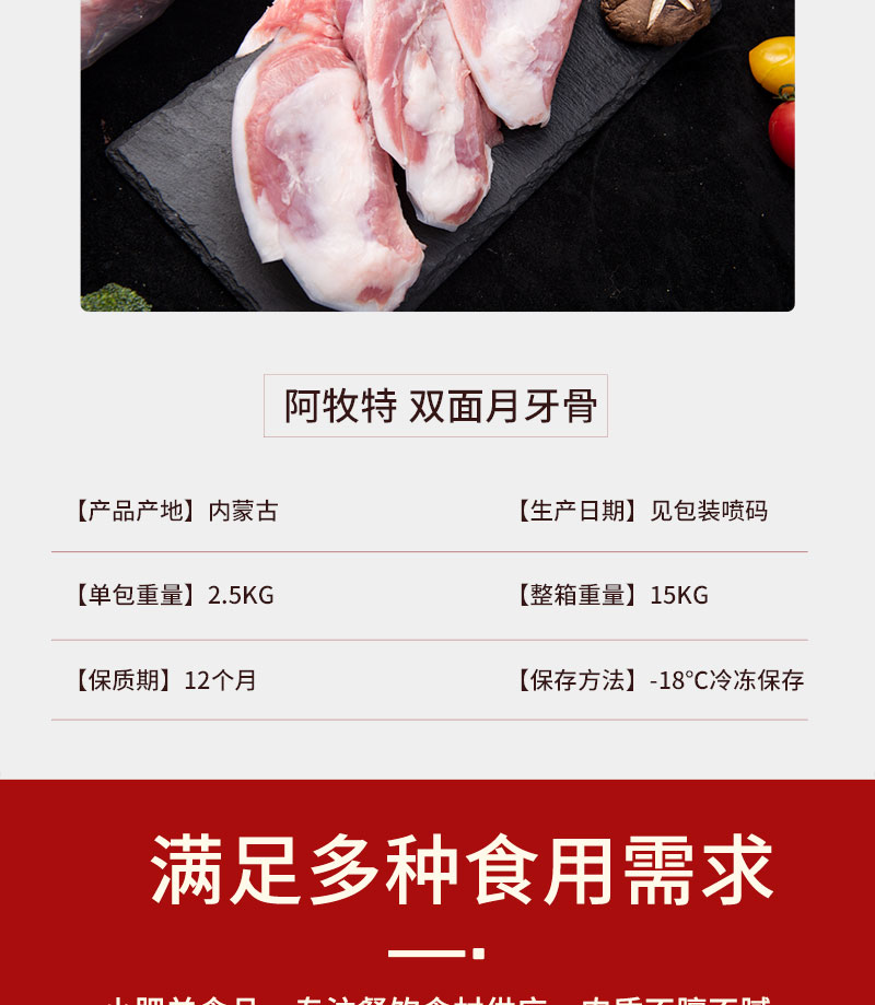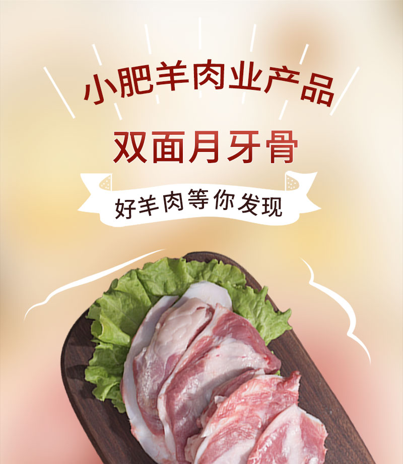 配料:月牙骨双面带肉,用模具拜访整齐装袋。月牙骨是羊的前腿夹心肉与扇面骨相连出的一块月牙形软组织(俗称“脆骨”),它连着筒子骨、扇面骨,上面又一层薄薄的瘦肉,骨头为白色的脆骨。
