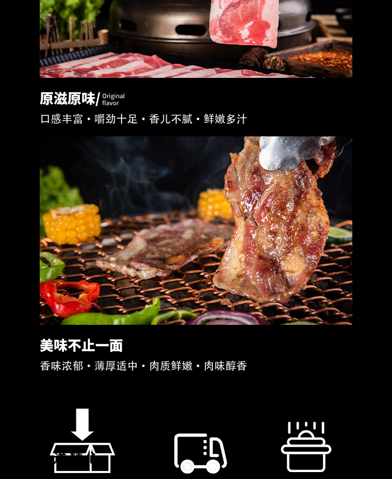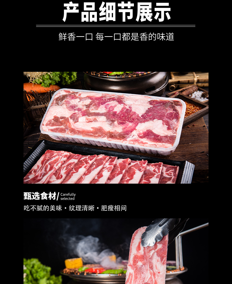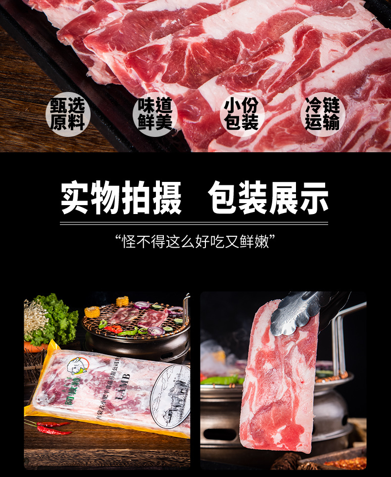 配料:产品采用微调理工艺,根据模具装盒压板而成。优选A板的羊肉鲜嫩,不腥不膻,嫩滑爽口。