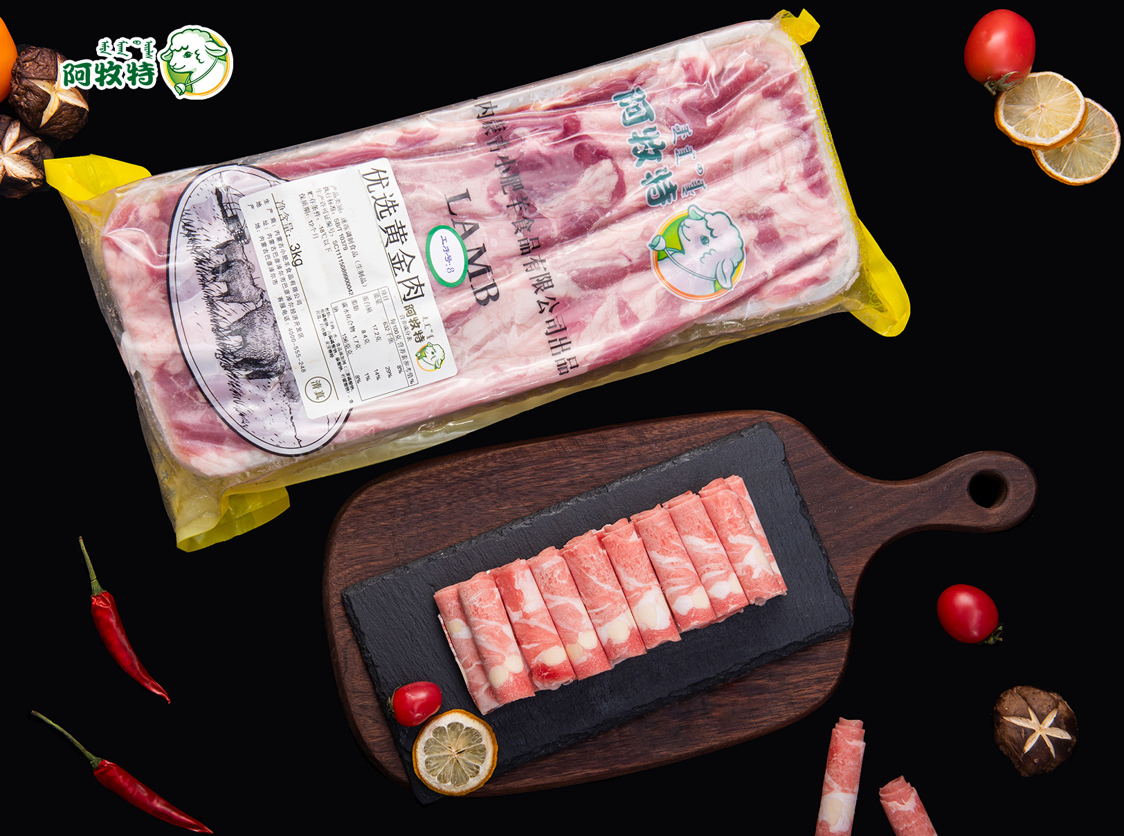 配料:产品采用微调理工艺,产品中间增加肉黄筋,根据模具装盒压板而成。优选黄金肉的肉质鲜嫩,纹理清晰,肉筋的加入让羊肉的口感层次有嚼劲,营养丰富。