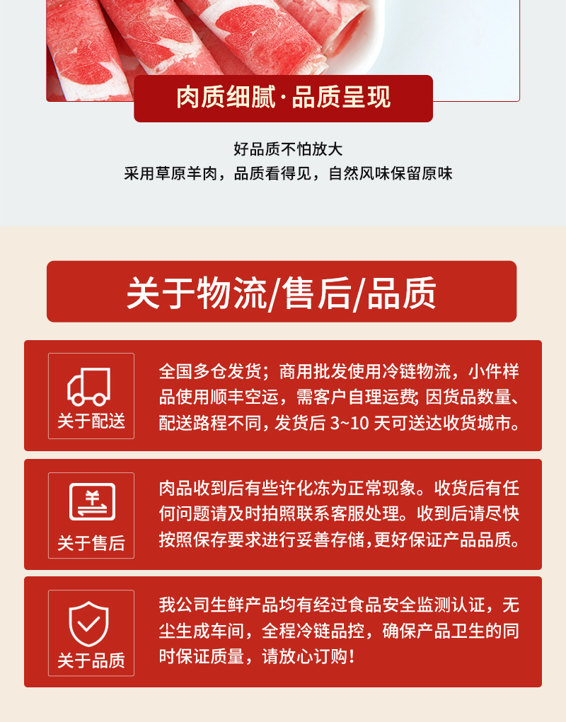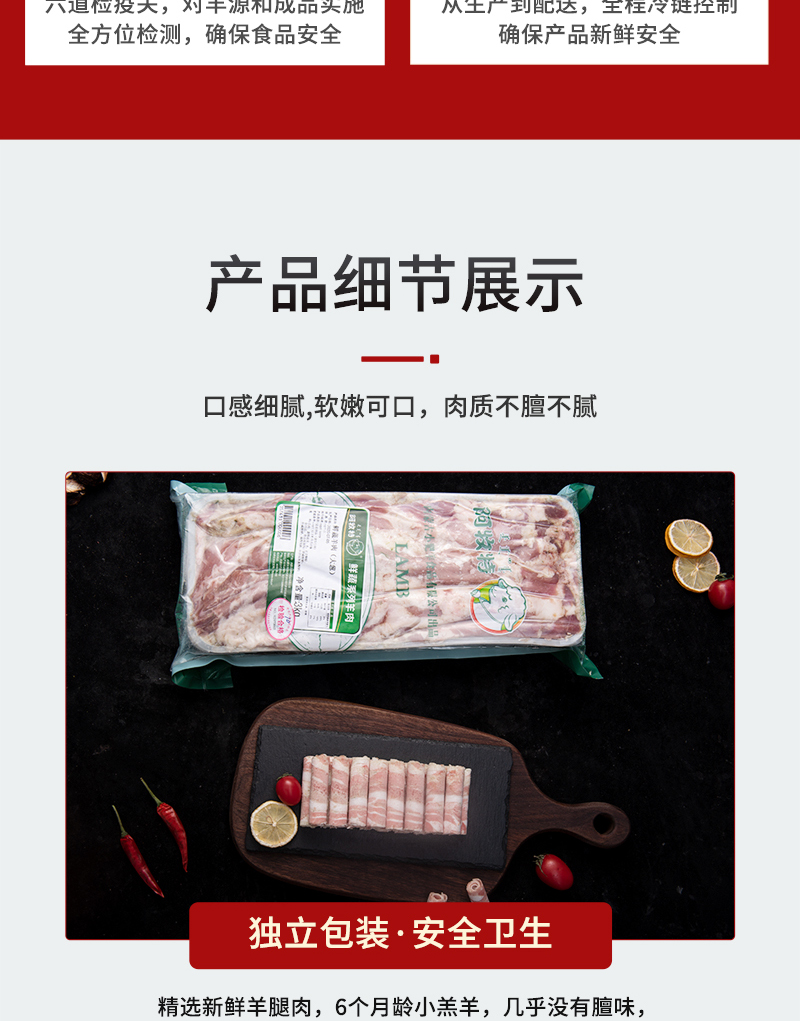 特点:优选广东大草原草饲羔羊,天然有机牧草丰富矿物质地下水孕育。散养羔羊自然生长六个月不育肥,羊肉嫩而不柴,鲜香不膻。