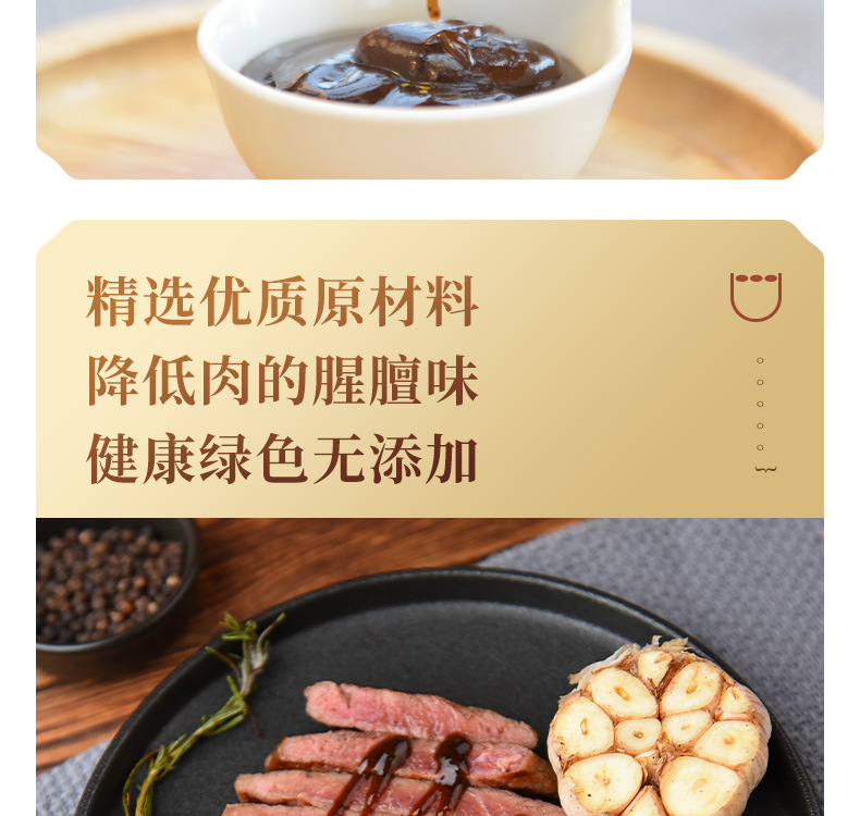 牛排烤熟后,蘸食本品,增色添香