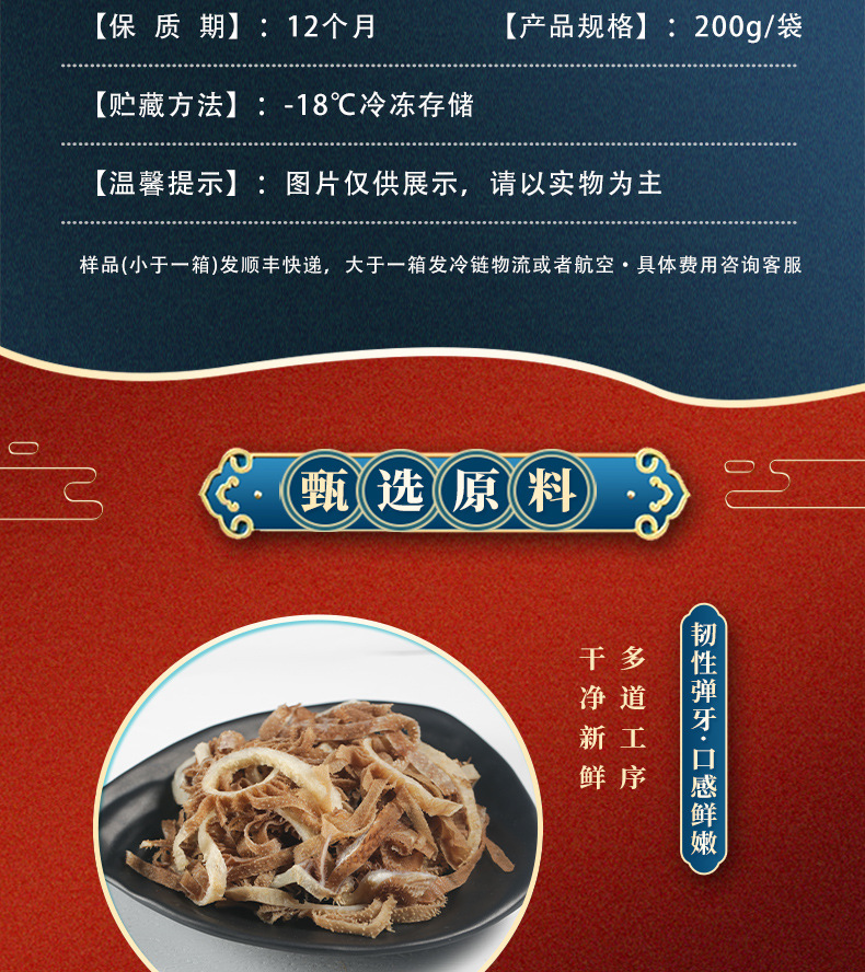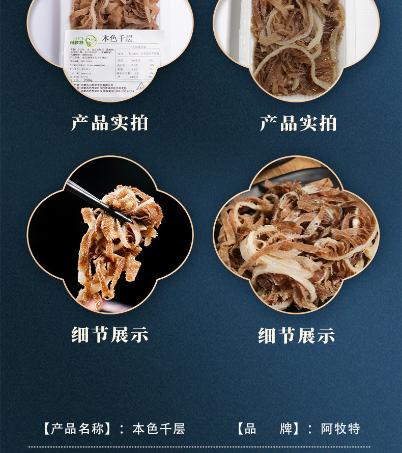 配料:牛黑毛肚,牛毛肚筋清洗热水漂洗后,水发而成。