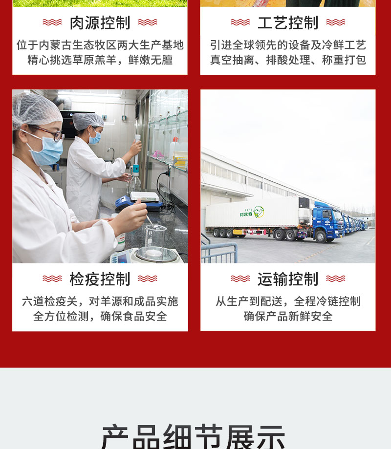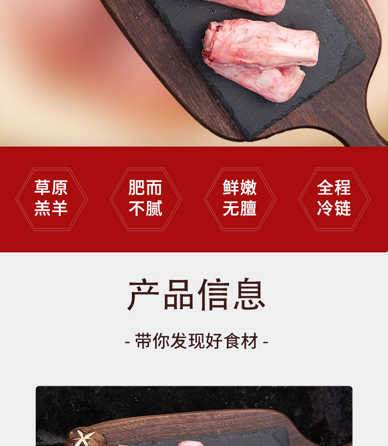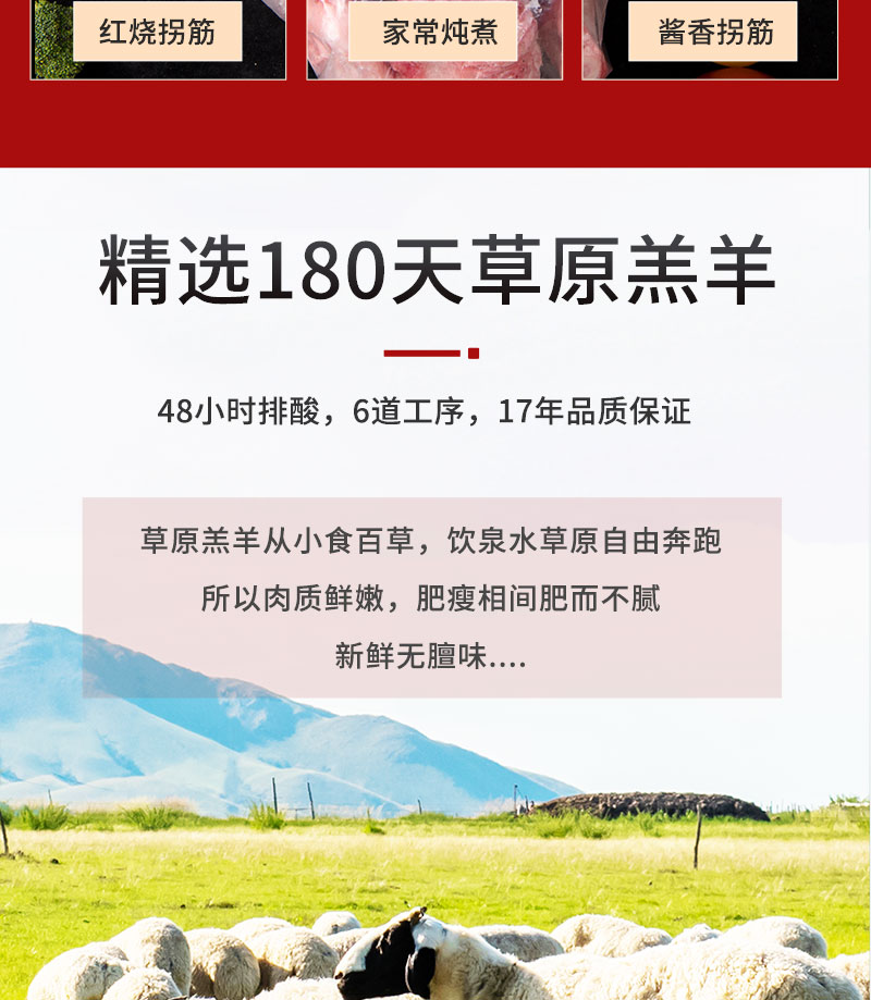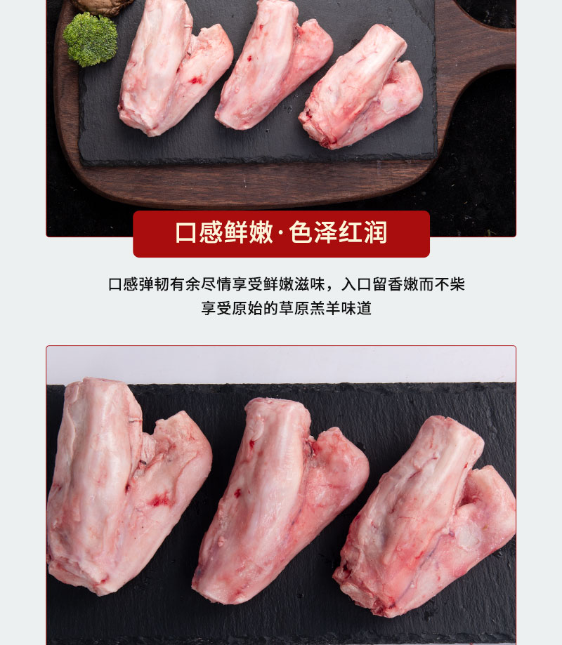 特点:优选广东大草原草饲羔羊,天然有机牧草丰富矿物质地下水孕育。散养羔羊自然生长六个月不育肥,羊肉嫩而不柴,鲜香不膻。